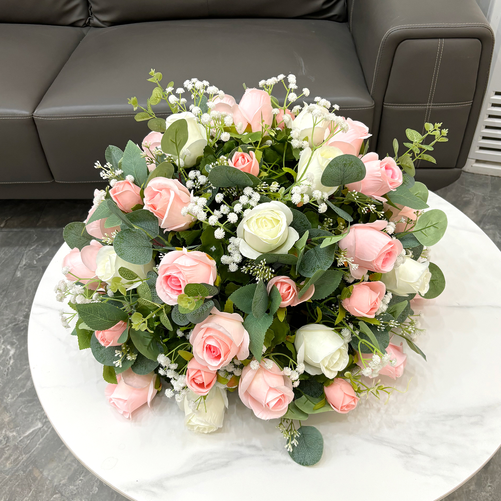 客厅50cm仿真白色玫瑰花球婚礼餐桌摆放花求婚橱窗展厅装饰路引花