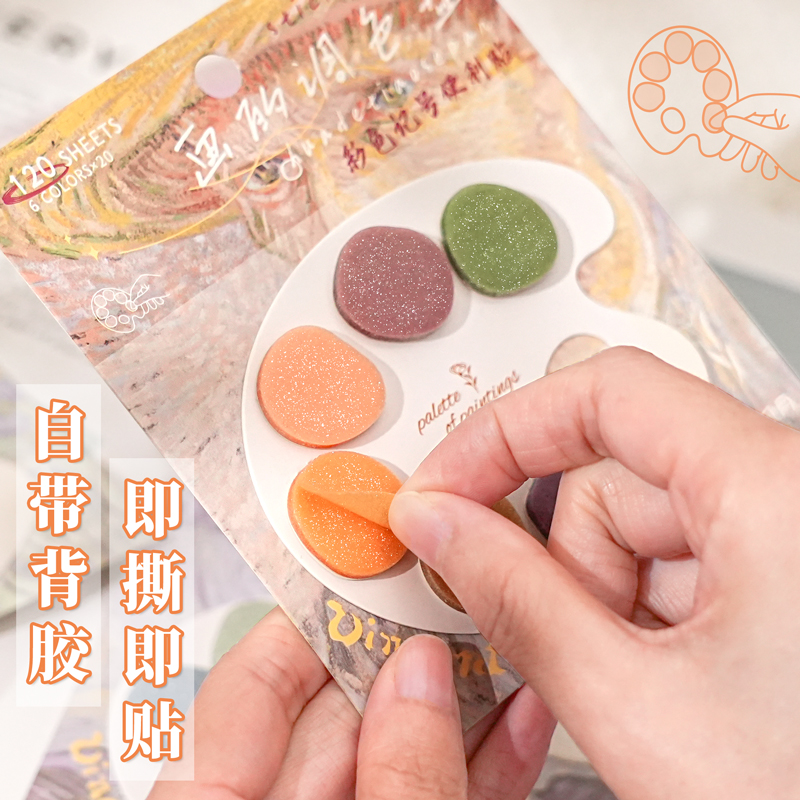 彩色调色板便利贴圆形不干胶贴纸自粘贴可手写字小号记号便签口取纸标签波点即时贴相册diy莫兰迪装饰N次贴纸
