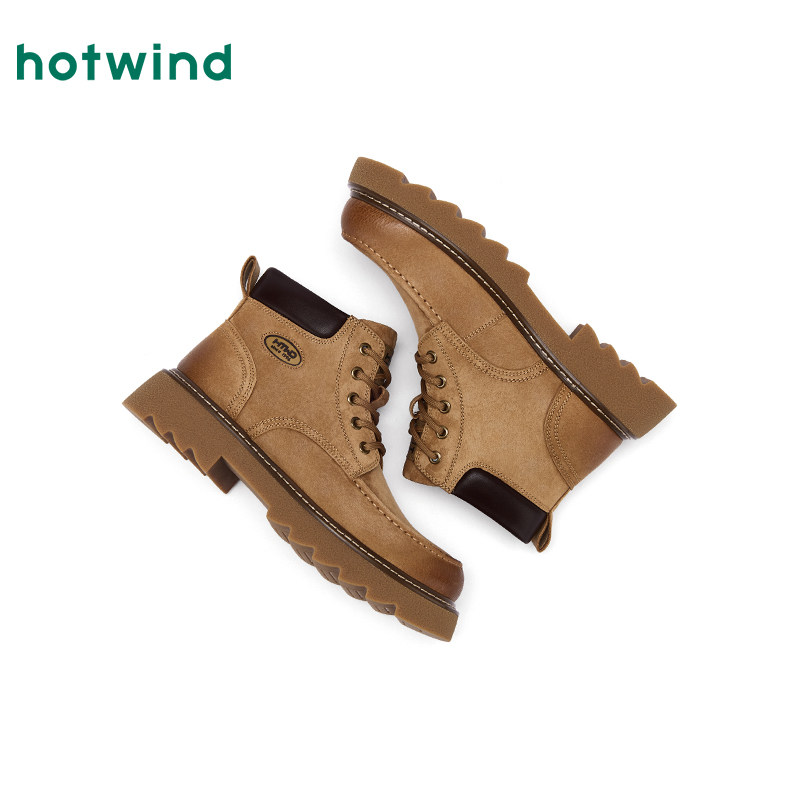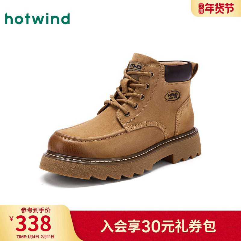 热风男鞋2025年冬季新款男士时尚休闲靴潮流增高黄色工装马丁靴子