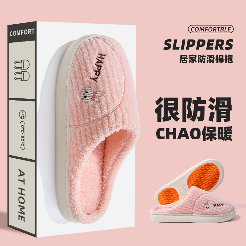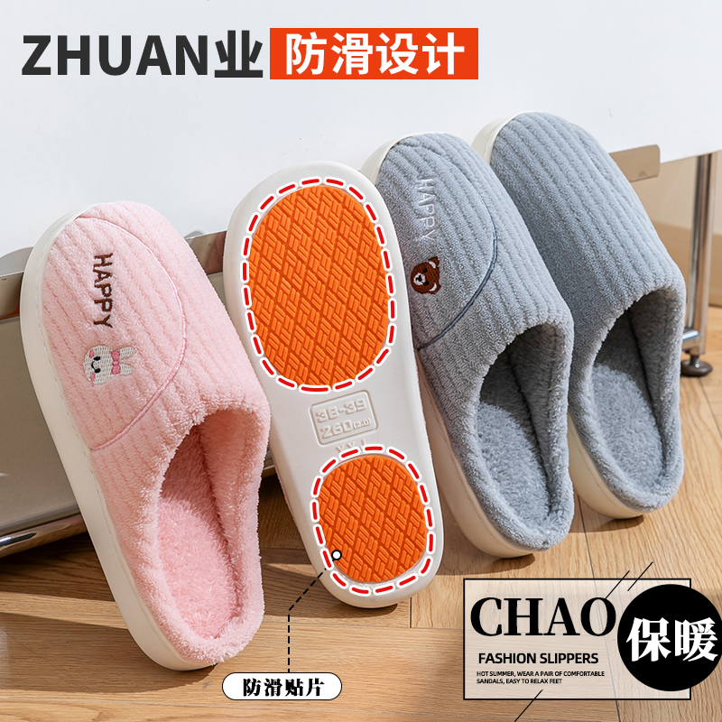 防滑棉拖鞋女秋冬季2025新款家居保暖家用月子老人防摔毛绒厚底男
