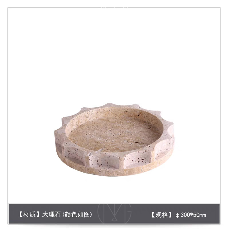 大理石装饰摆件坚果盘瓜果盘客厅餐桌样板房摆件黄洞石家居物盘子