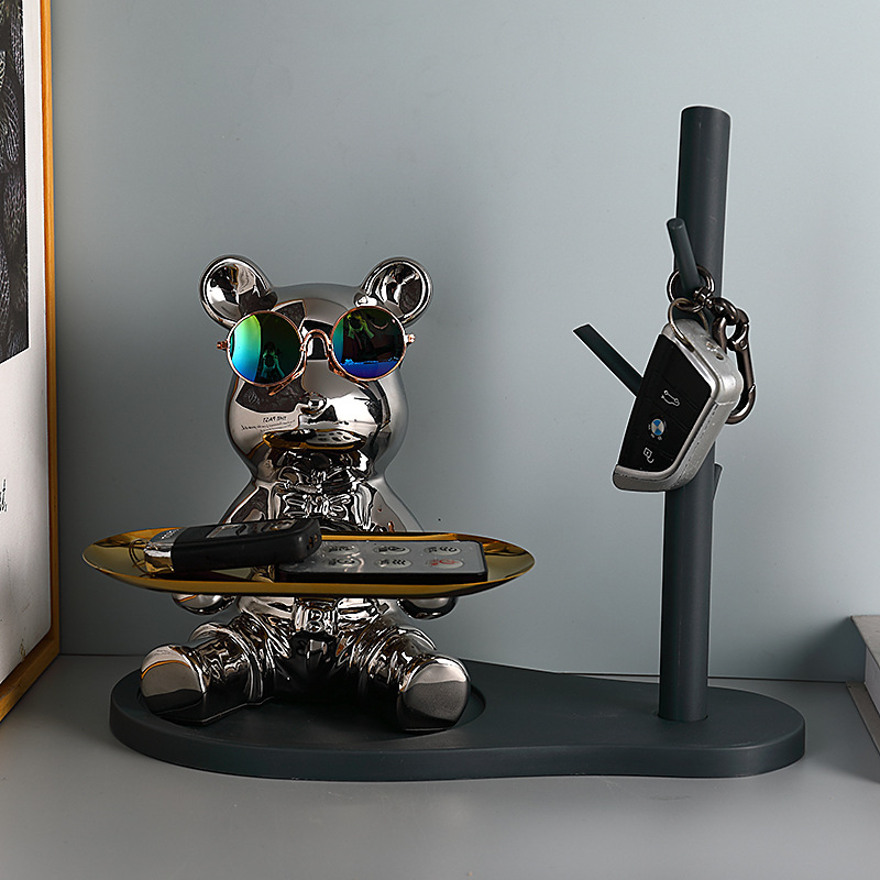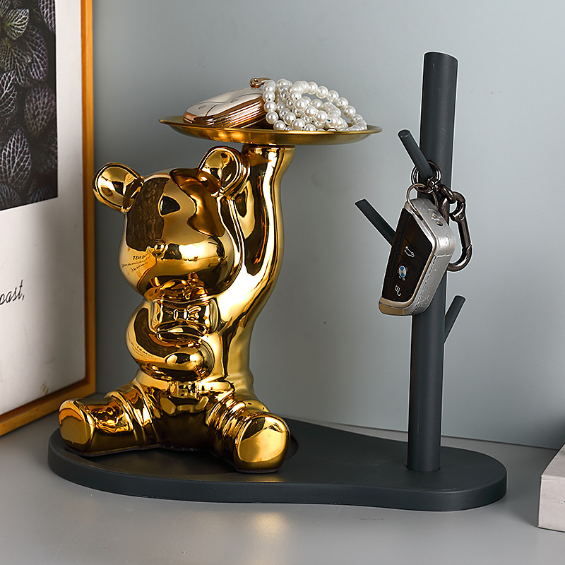 入户玄关钥匙收纳托盘轻奢熊摆件