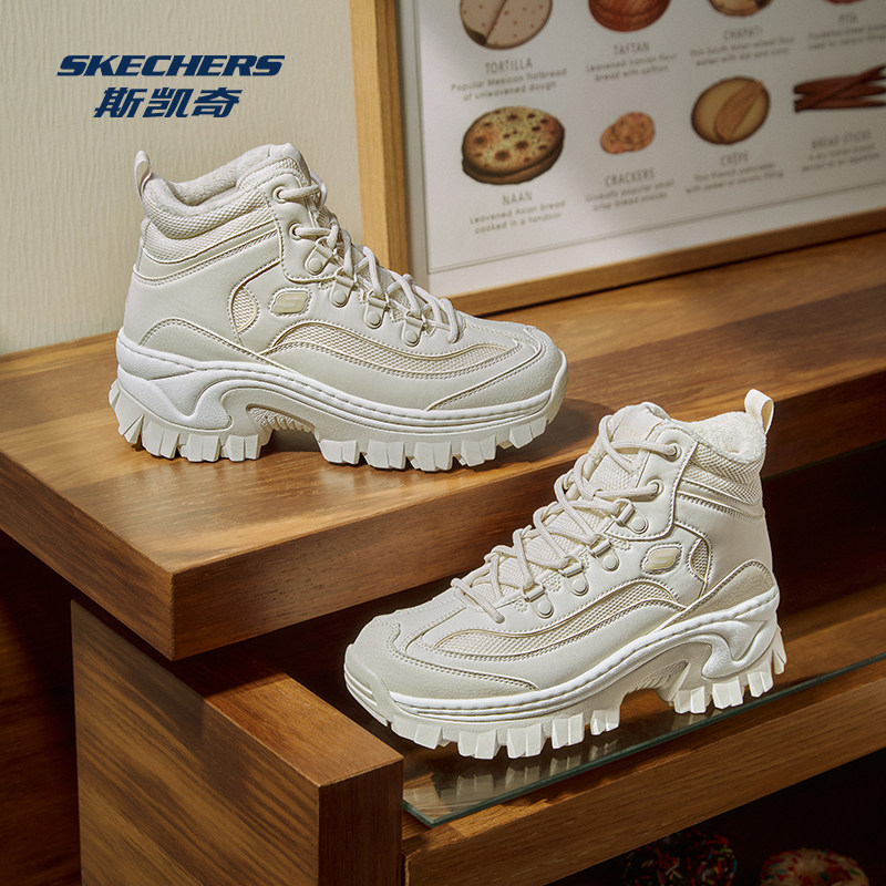 Skechers斯凯奇女鞋高帮蜜糕鞋甜酷暖冬加保暖鞋厚底增高防滑耐磨