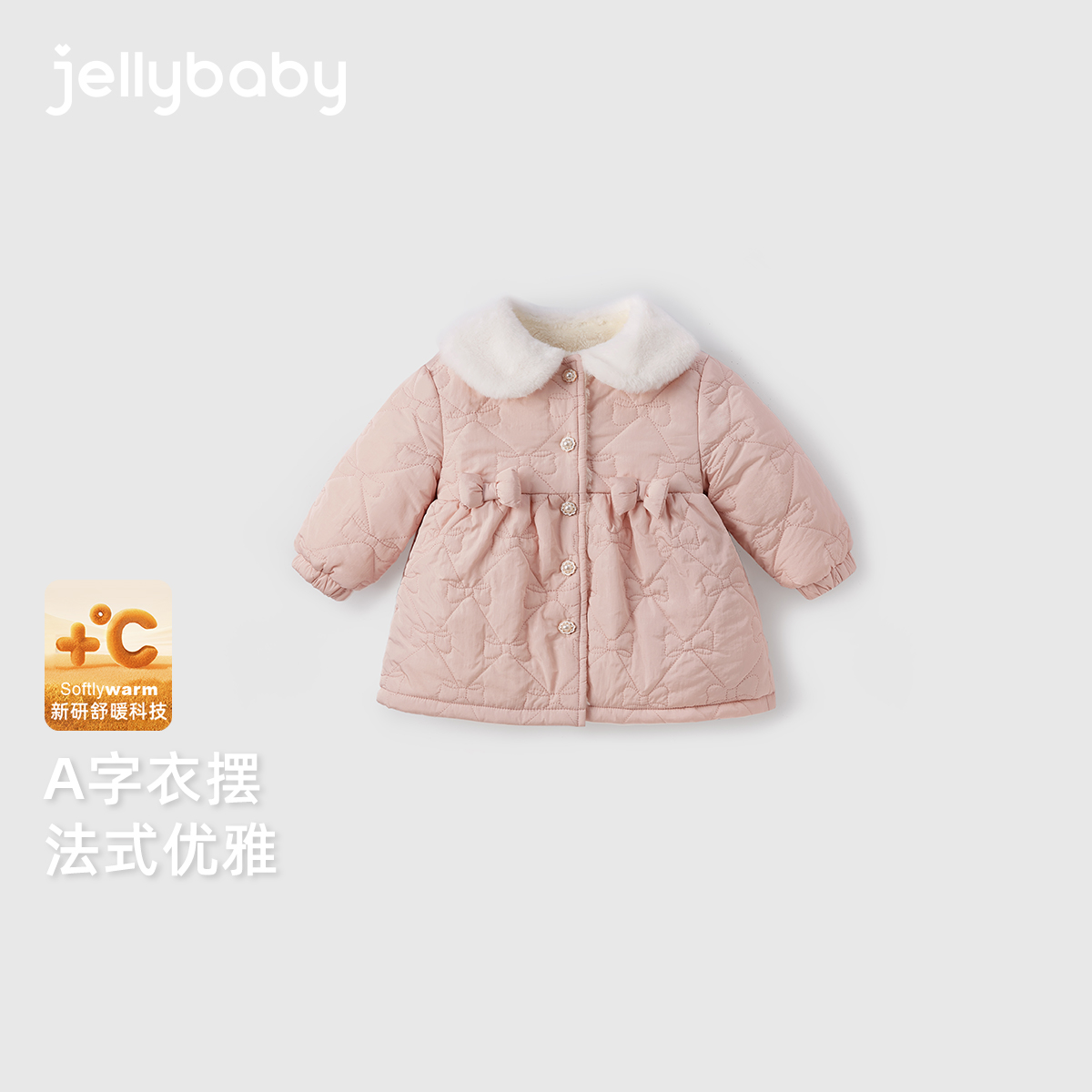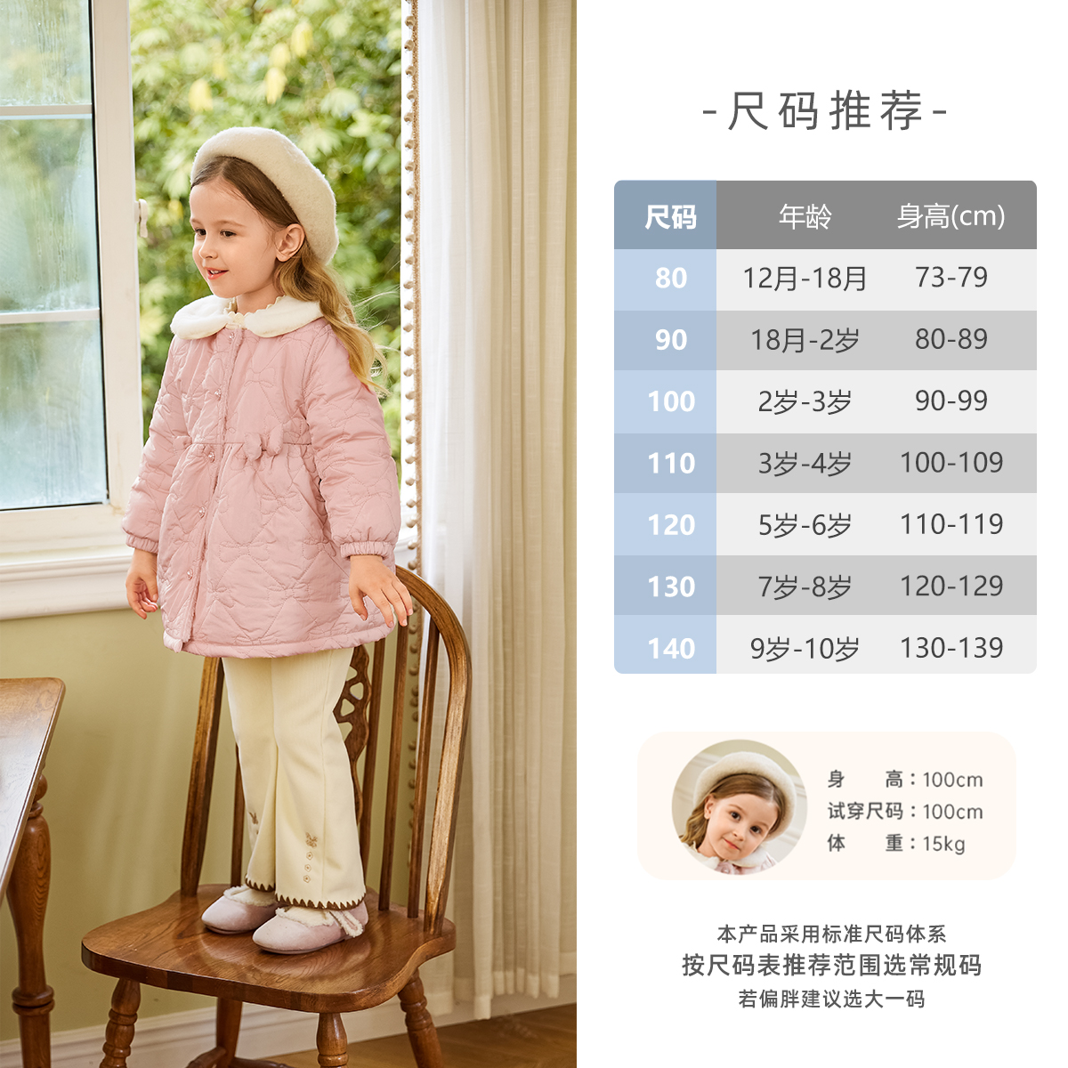 【2025秋冬新品】女童新款棉服宝宝加绒中长款粉色衣服女儿童外套
