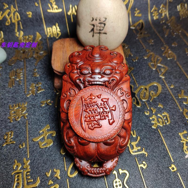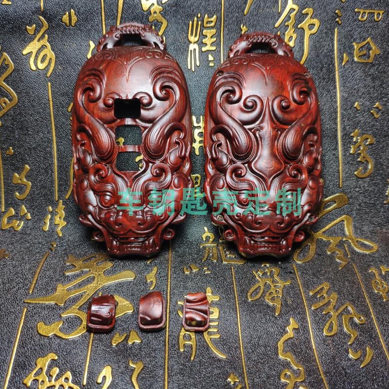 紫檀木汽车钥匙壳木雕定制包转轮全包实木适用于大众奔驰本田宝马