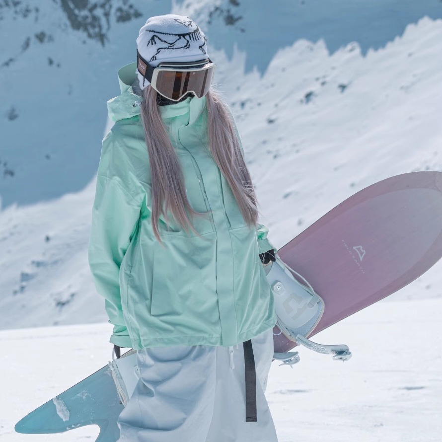雪否浅绿色滑雪服女3L防水防风滑雪外套男压胶滑雪三合一可拆卸