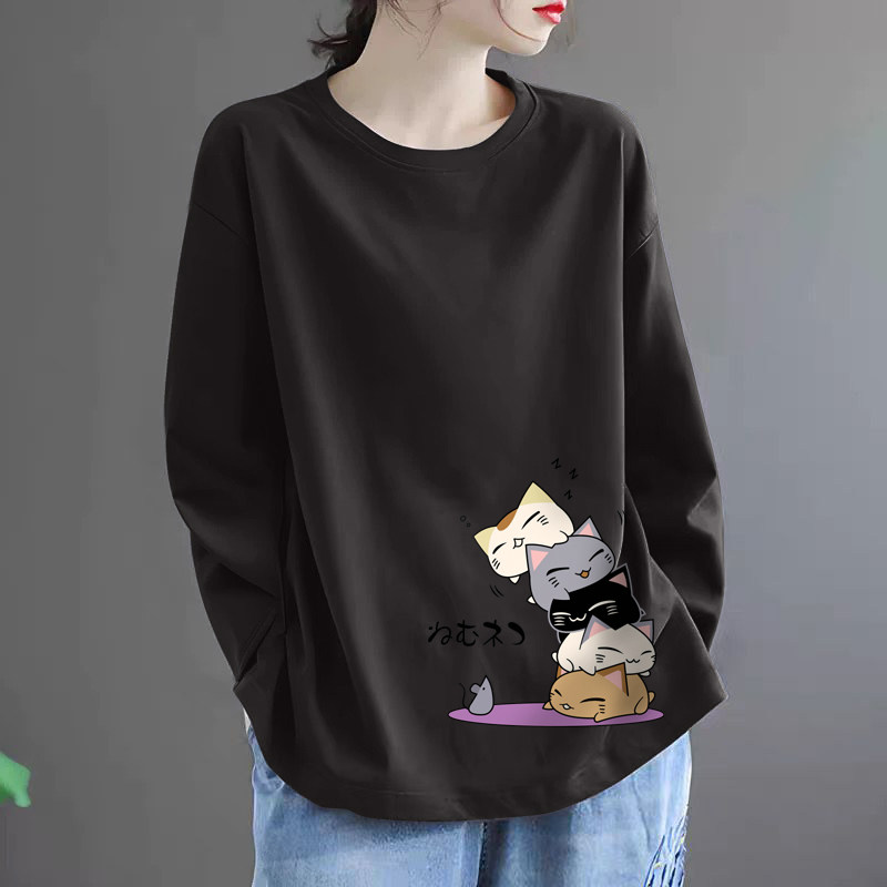 外贸出口清仓100%纯棉长袖t恤女2025春季休闲气质体恤宽松上衣潮