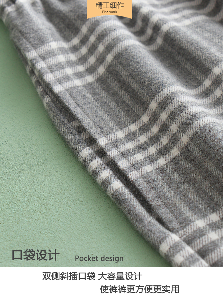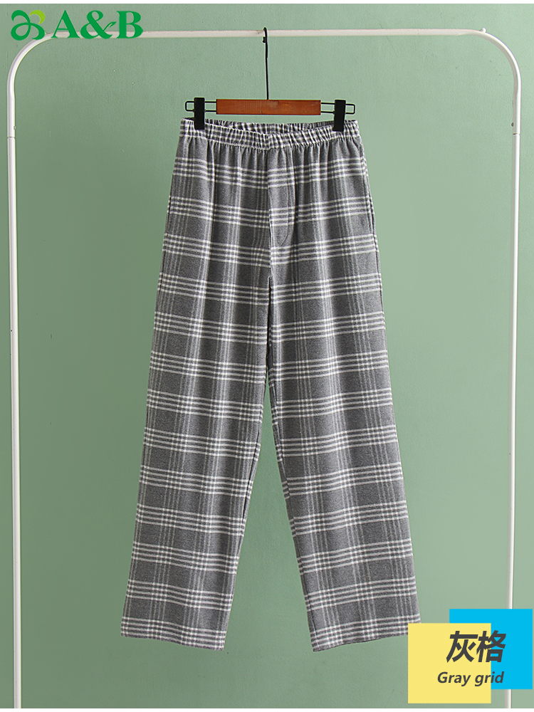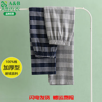 AB内衣睡裤男冬纯棉刷绒宽松全棉居家裤子大码高腰格子家居长裤
