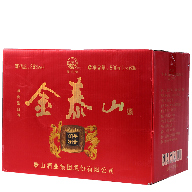 金泰山酒喜庆版36度500ml浓香型白酒纯粮酿造铁盒装山东名酒促销