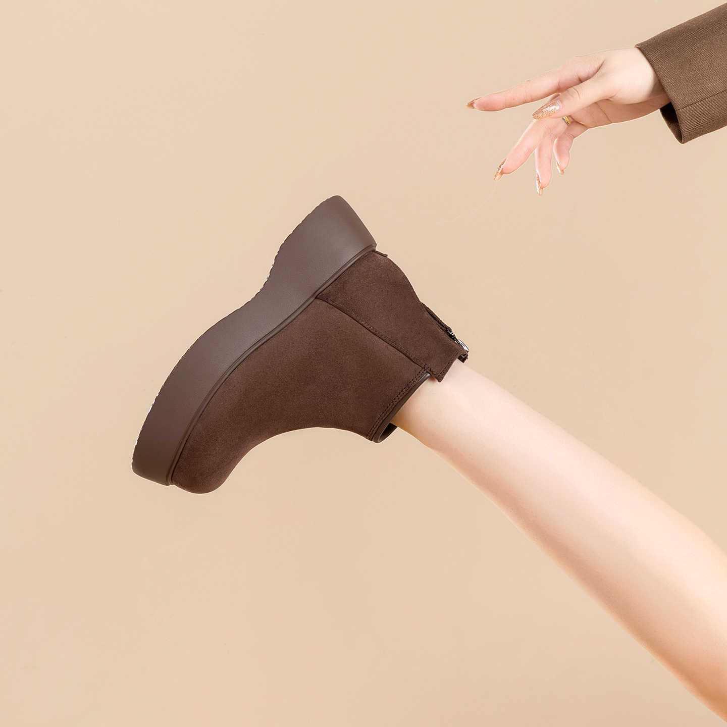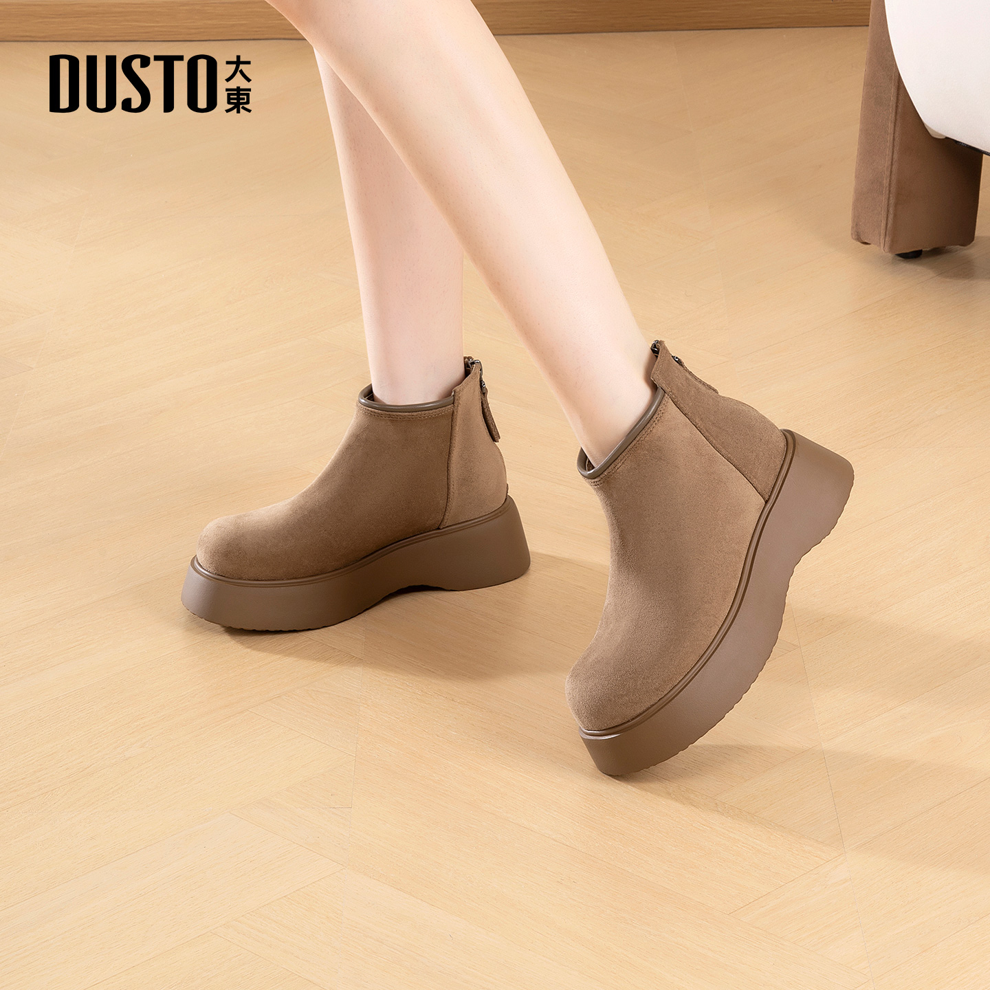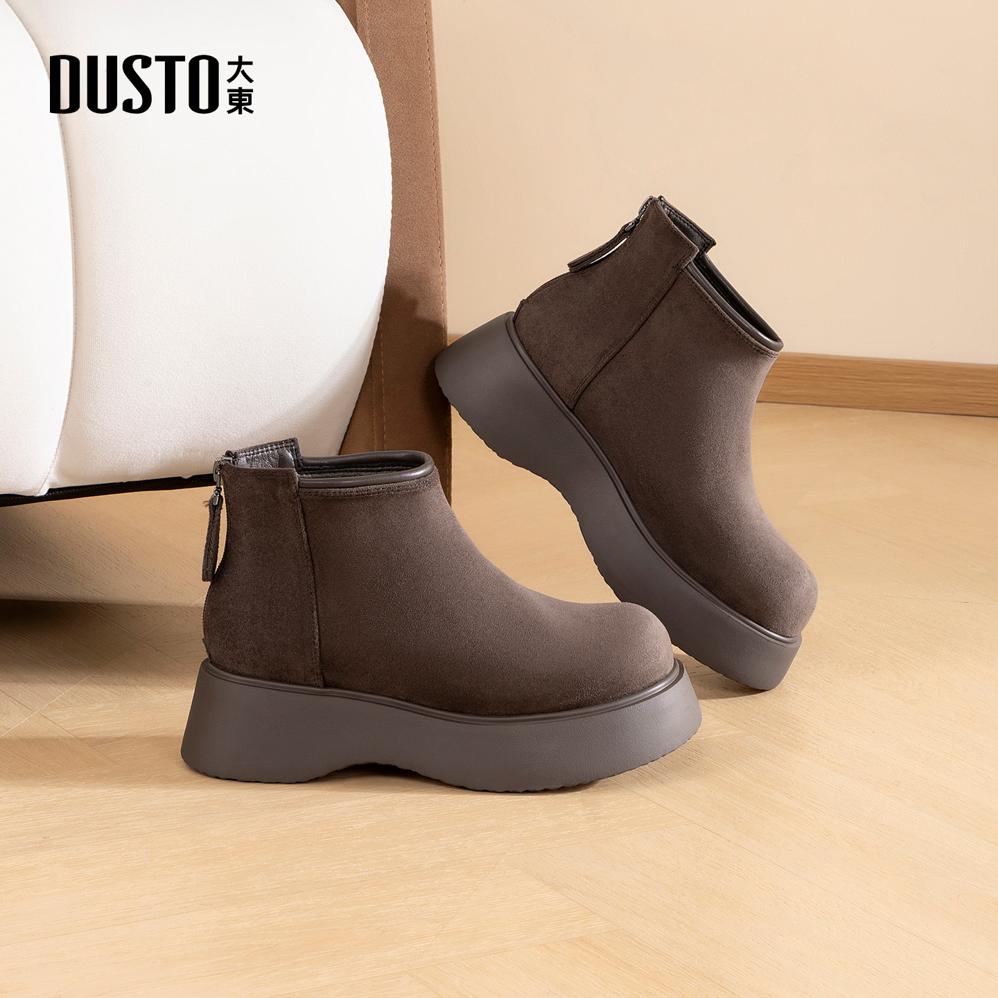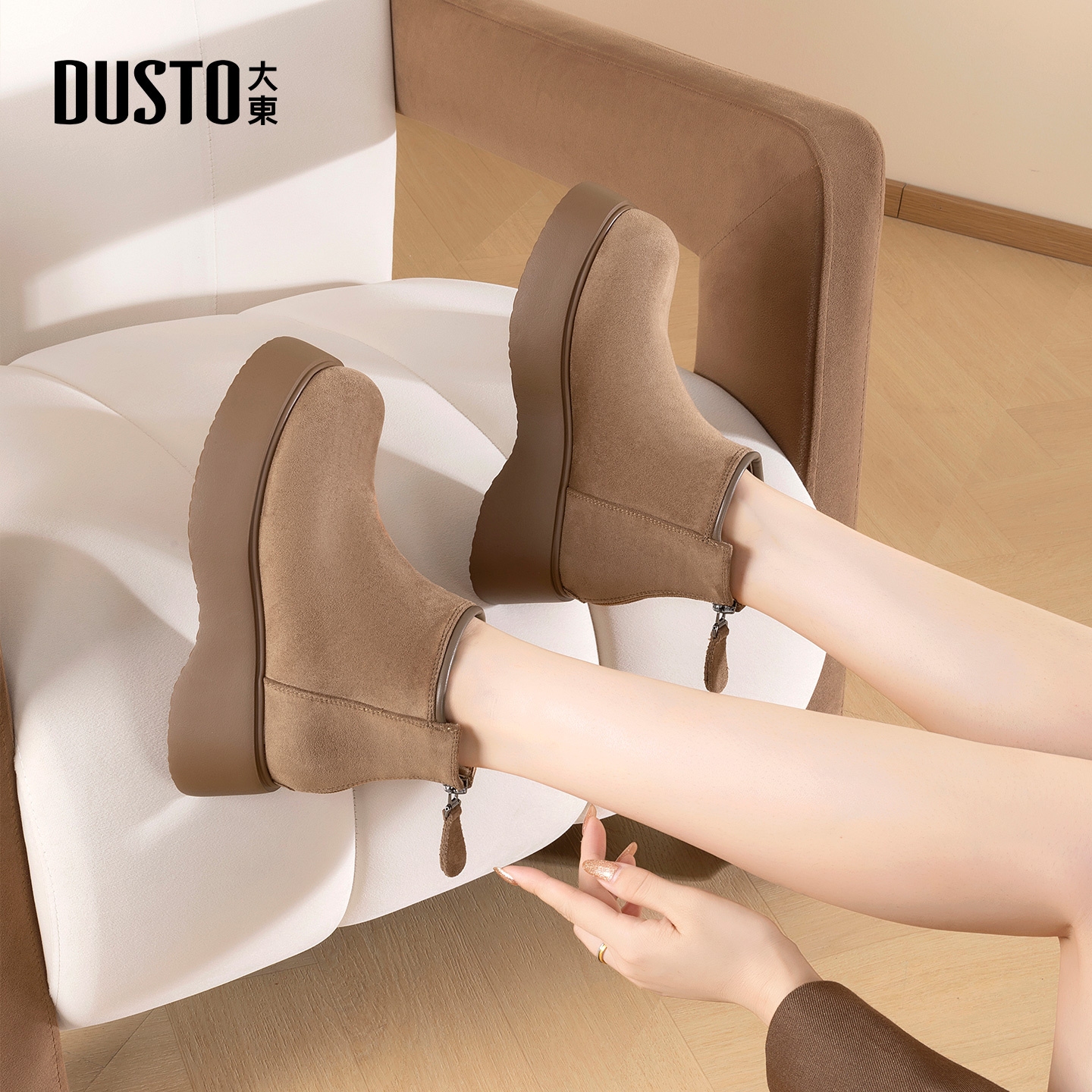 大东女靴时装靴2025冬季新款复古绒面圆头后拉链厚底增高女士短靴