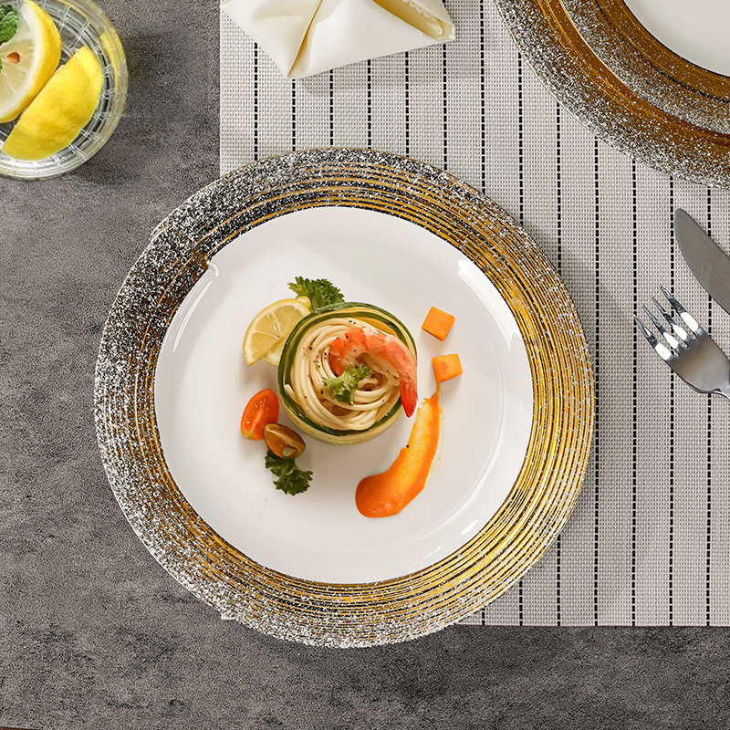 北欧西餐餐盘牛排盘子高级感菜盘意面盘陶瓷餐具家用白色金边浅盘