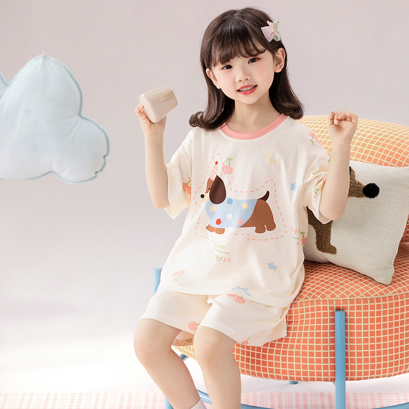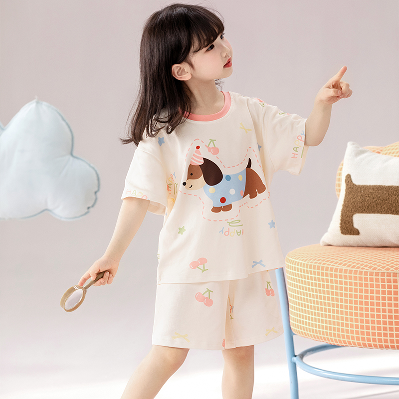 女童亲子睡衣韩版夏季短袖纯棉透气中大童圆领女孩家居服两件套夏