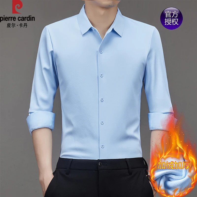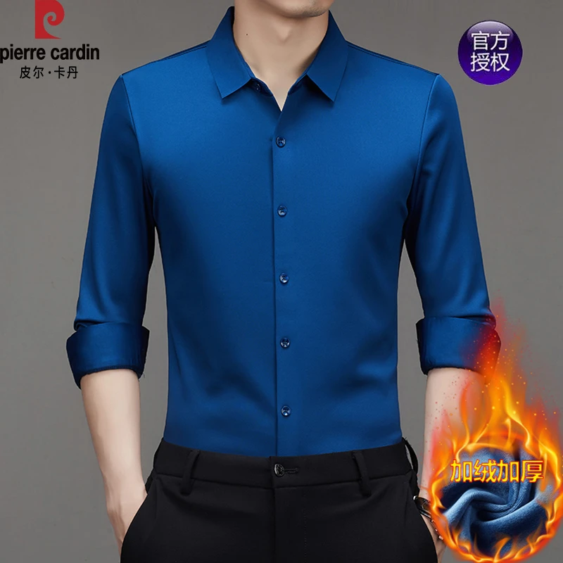 皮尔卡丹加绒加厚桑蚕丝+羊毛长袖衬衫男士高级感真丝保暖衬衣男
