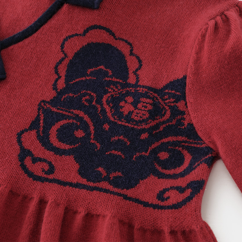 【新中式抗静电】齐齐熊女童连衣裙毛衣宝宝周岁礼服儿童秋冬裙子