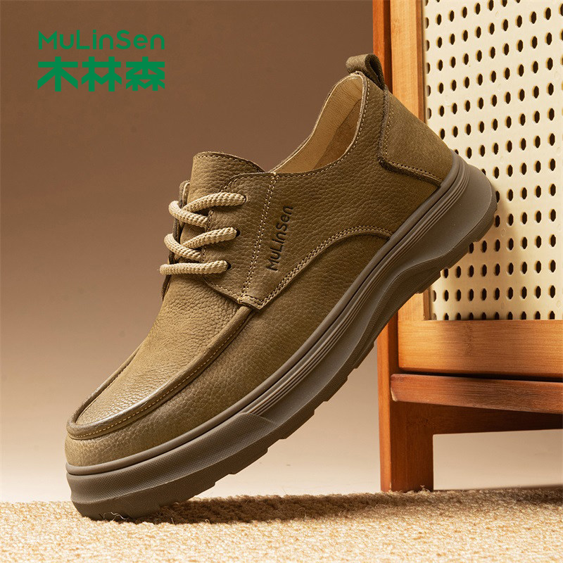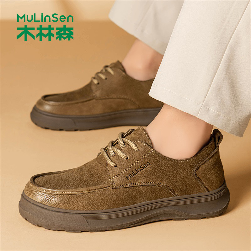 木林森休闲皮鞋男款复古工装板鞋