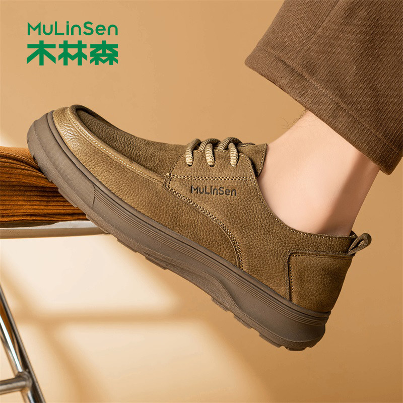 木林森休闲皮鞋男款冬季宽楦大头真皮男鞋头层牛皮复古工装板鞋男