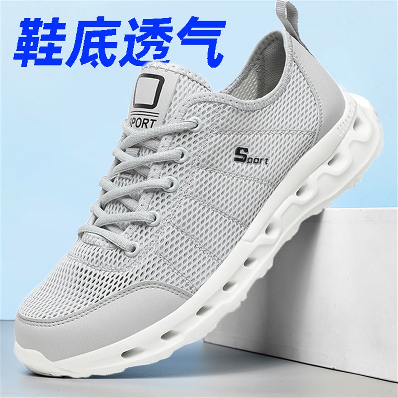 夏季薄款超软鞋底镂空透气防臭网鞋脚底通风轻便运动休闲大码男鞋