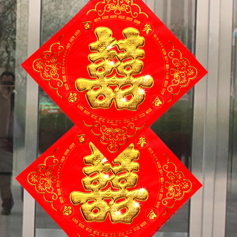 结婚喜字门贴出嫁用单喜字婚礼装饰井盖喜字小区口纸质喜字贴大门