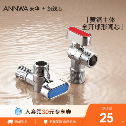安华厨卫三通角阀冷热水器阀门开关水止水阀分水器加厚黄铜球阀