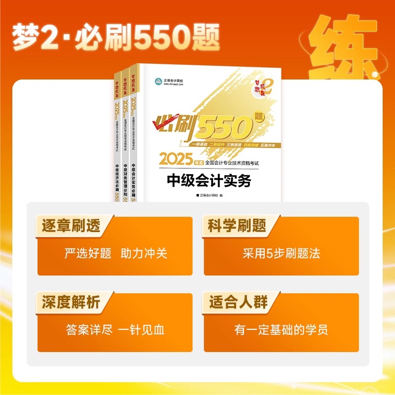2025中级会计实务必刷550题正保会计网校中级会计职称考试教材辅导书梦想成真1轻松过关梦想成真中级会计师官方教材习题
