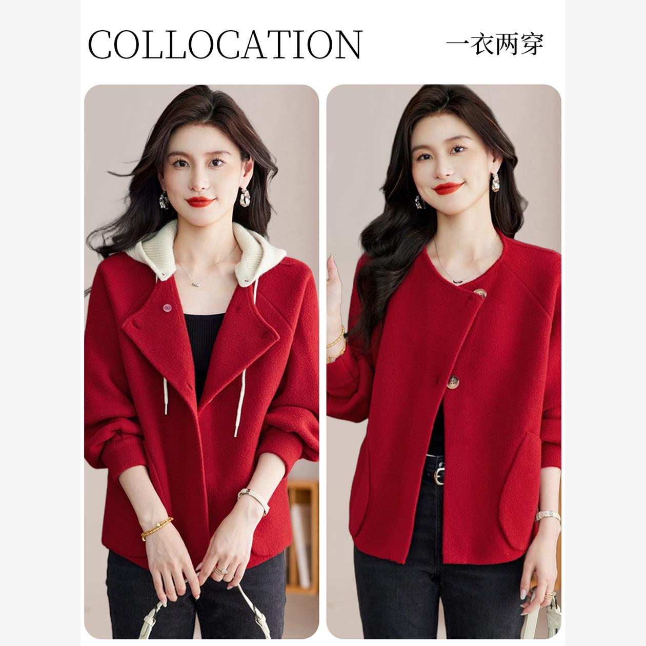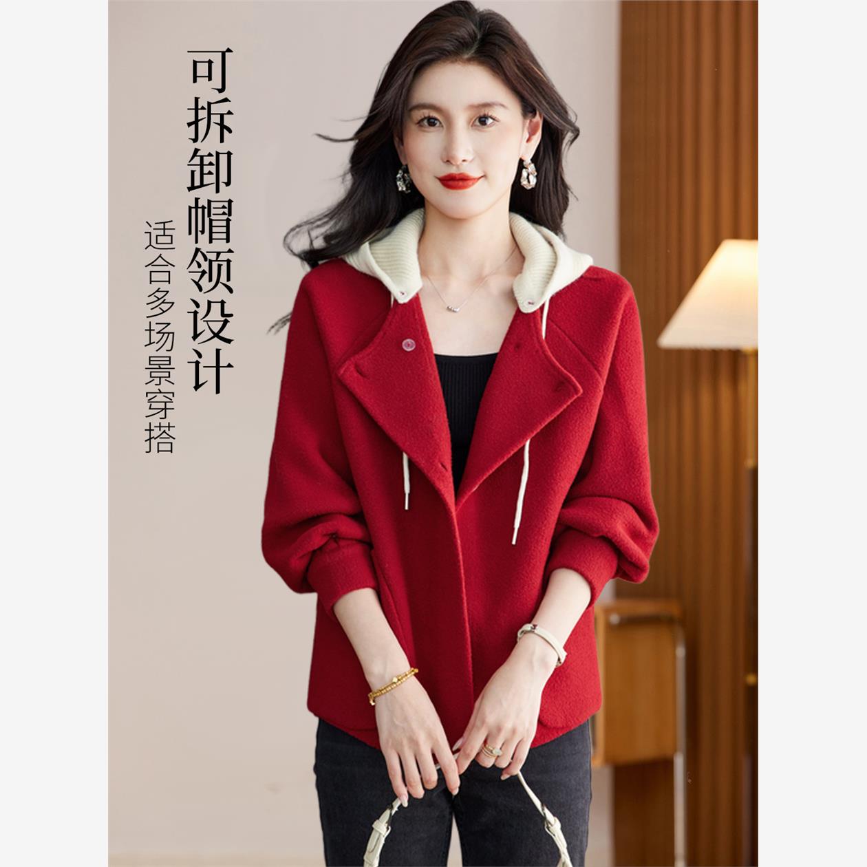 连帽针织外套女短款秋装2025新款宽松外搭毛衣开衫洋气带帽春秋季