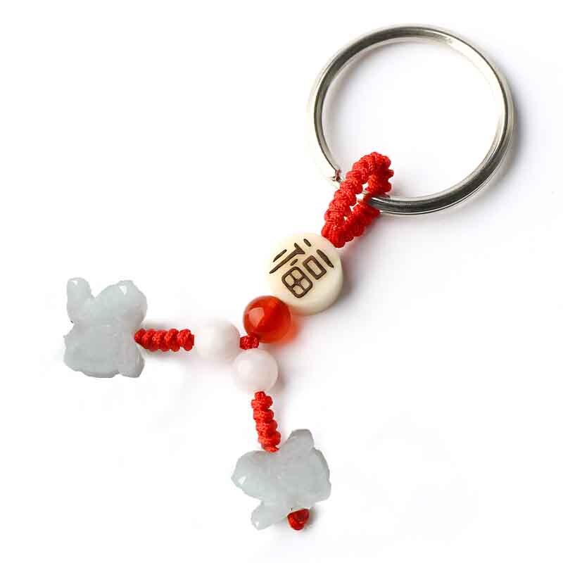 属猪2025年双兔迎禄吉贵宏翡翠吊坠手机链生肖猪手链佩戴物钥匙扣