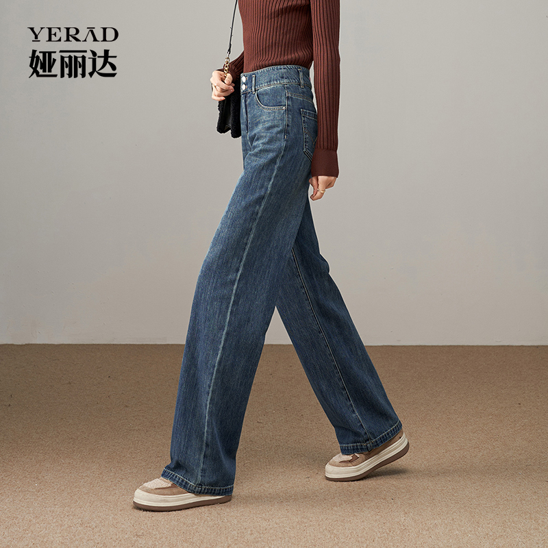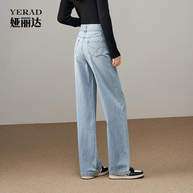 娅丽达女裤2025秋季新款宽松高腰窄版阔腿牛仔裤女直筒裤拖地长裤