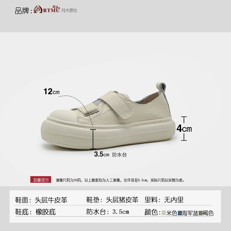 Artmu阿木厚底小白鞋女真皮魔术贴板鞋女款百搭休闲女鞋2025新款