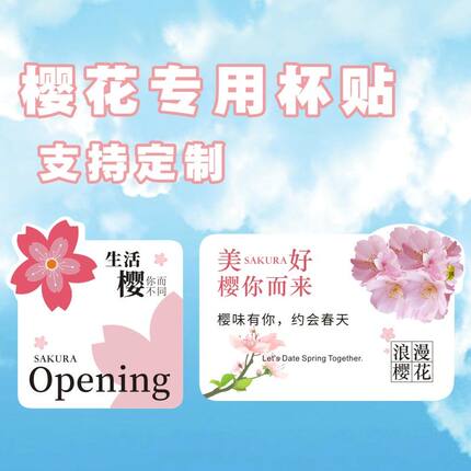 樱花季小红书推荐马卡龙奶茶樱花拿铁专用杯贴咖啡标签贴纸LH