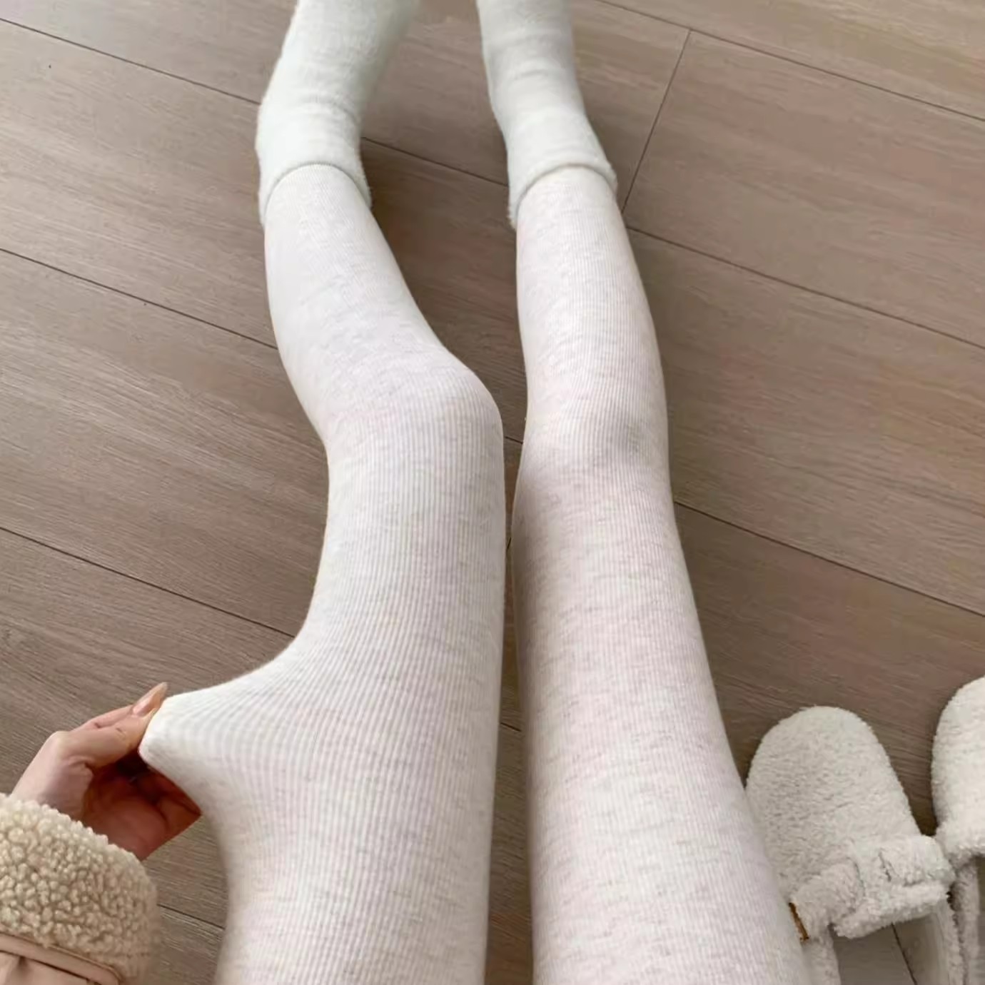 燕麦白打底裤秋冬内外穿螺纹保暖
