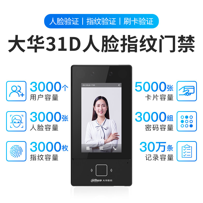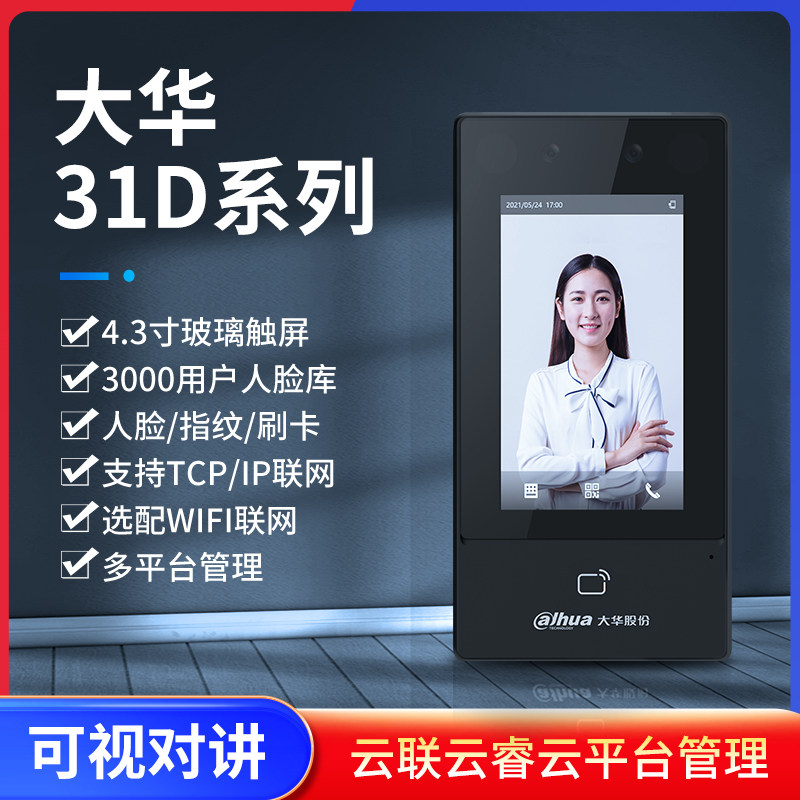大华4.3寸人脸识别门禁系统一体机联网考勤指纹刷卡可视对讲31D