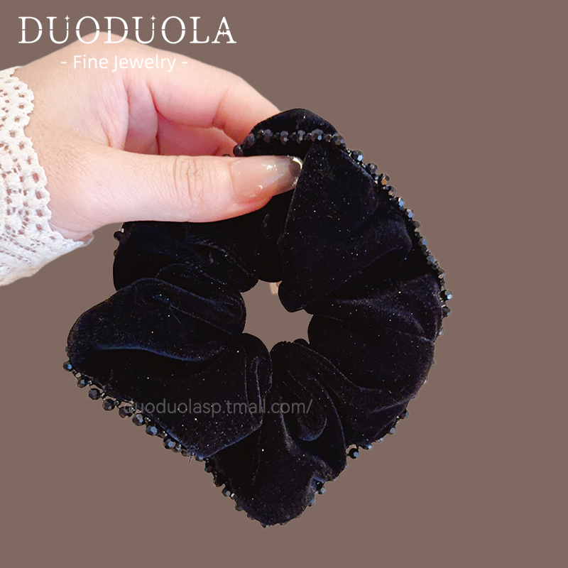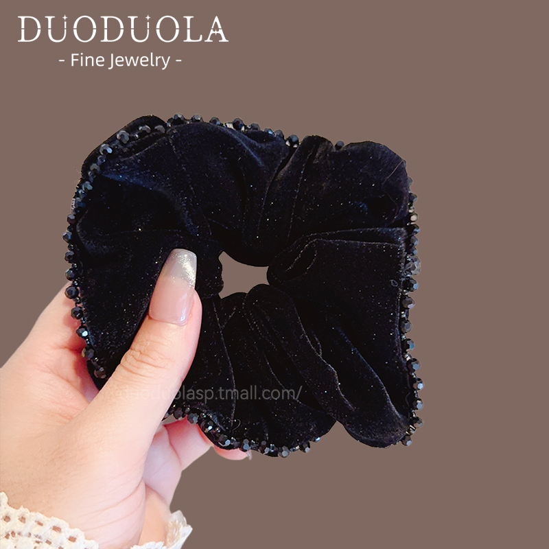 新款黑色串珠丝绒大肠发圈简约通勤外出发绳高弹力耐用百搭头饰女