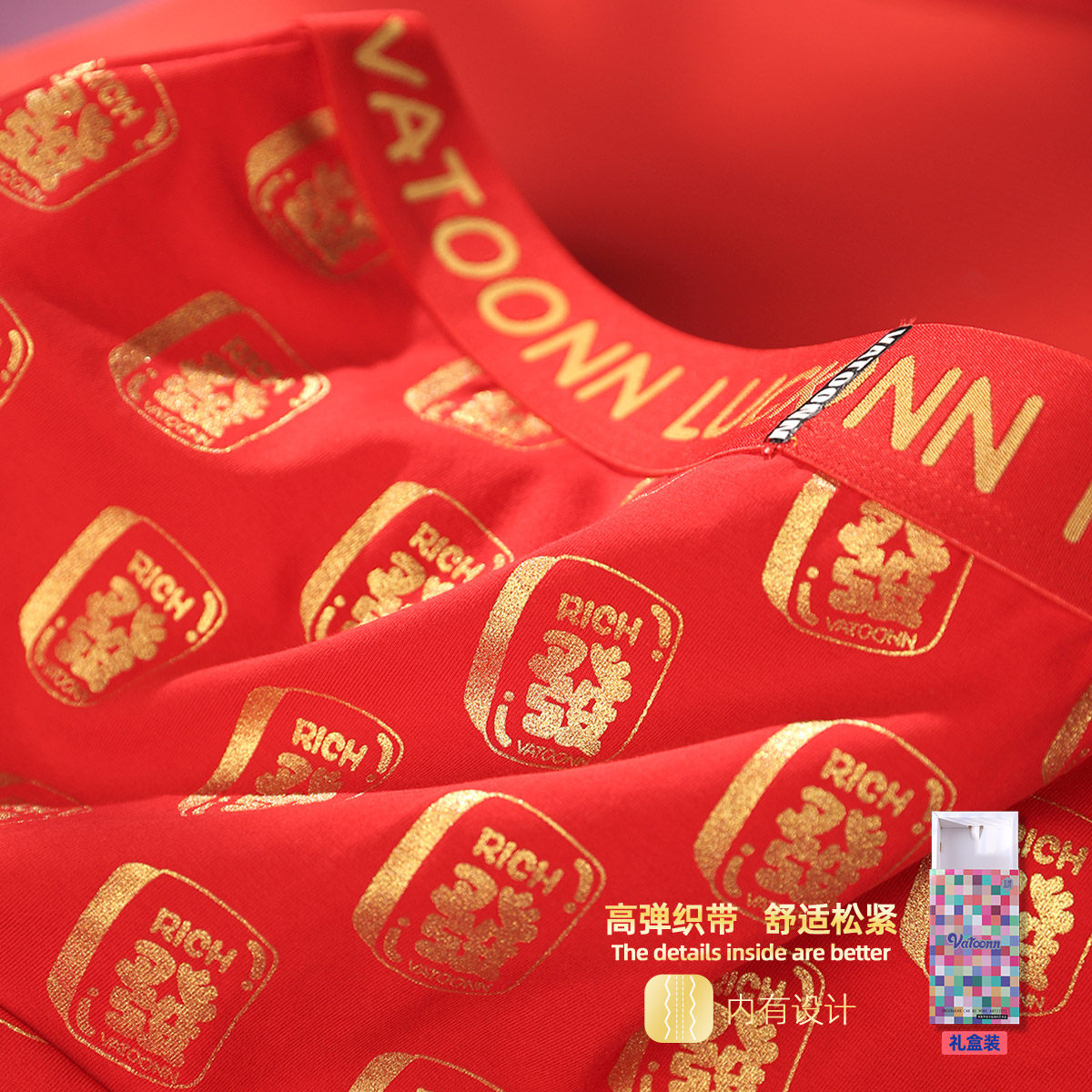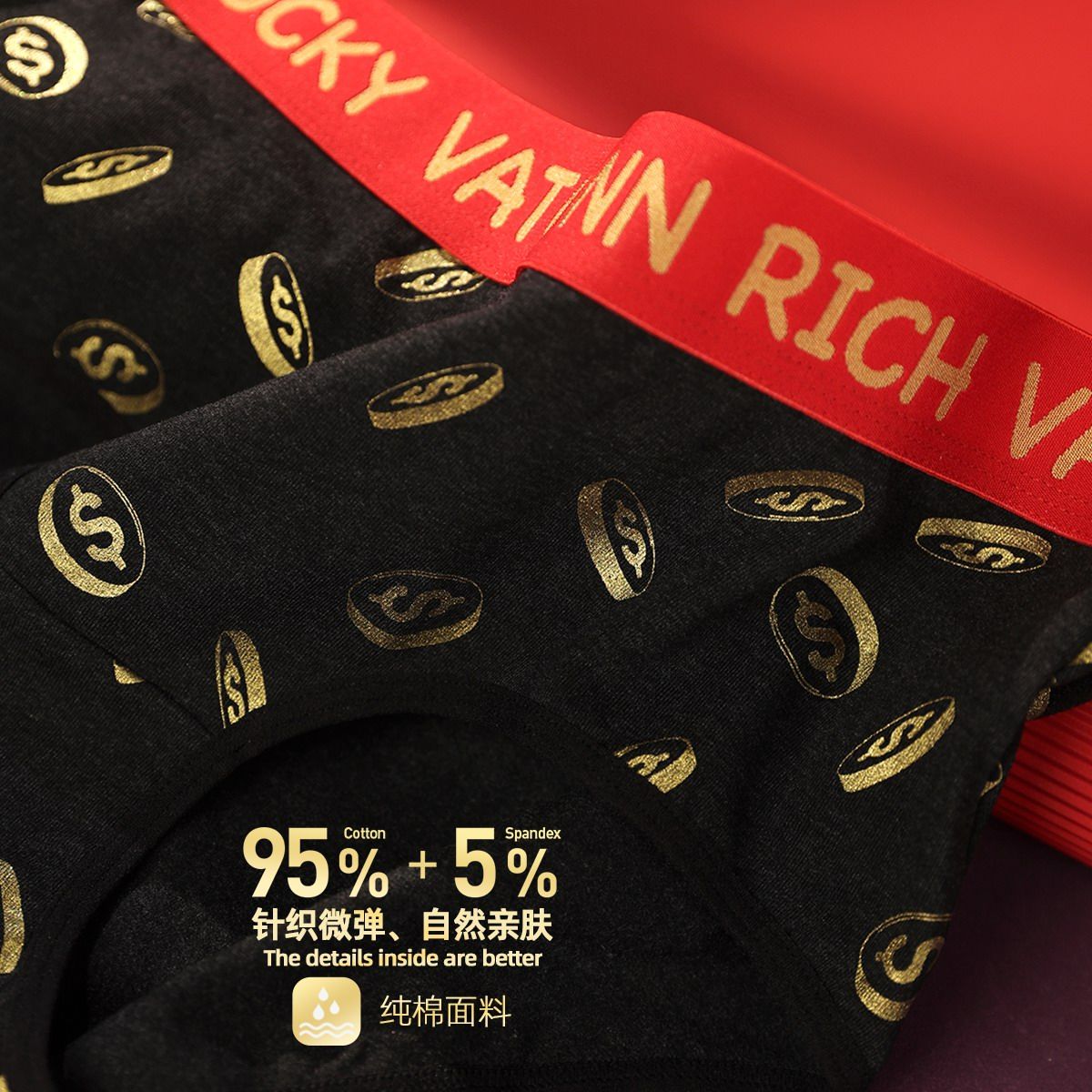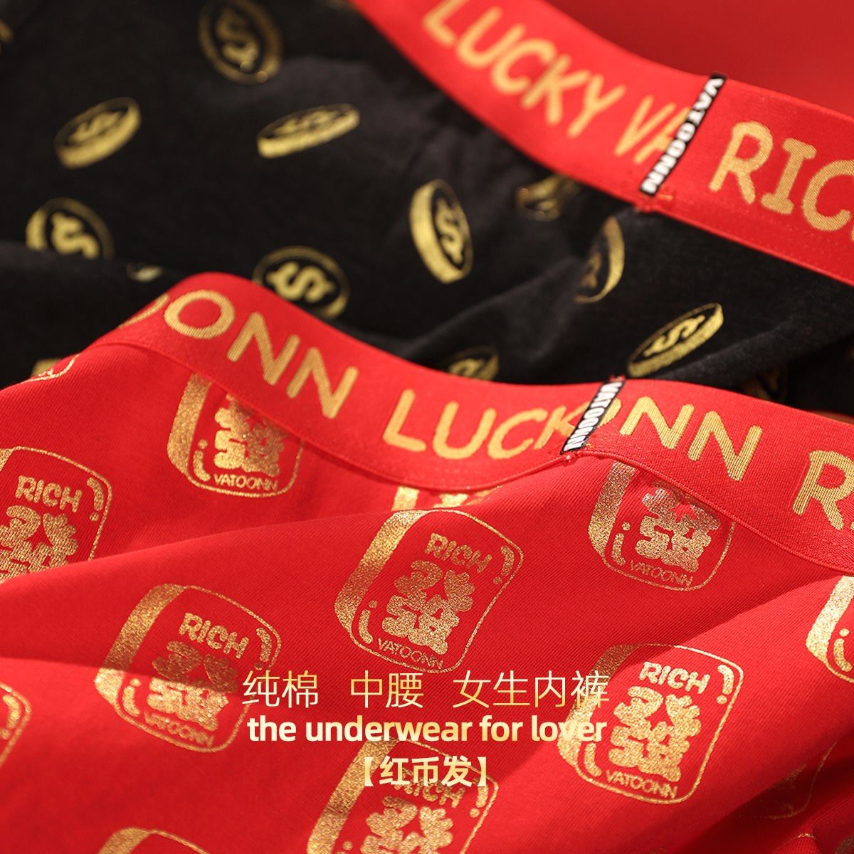 礼盒装女三角内裤纯棉印花中腰大码收腹宽腰带抑菌裆喜庆新年发财