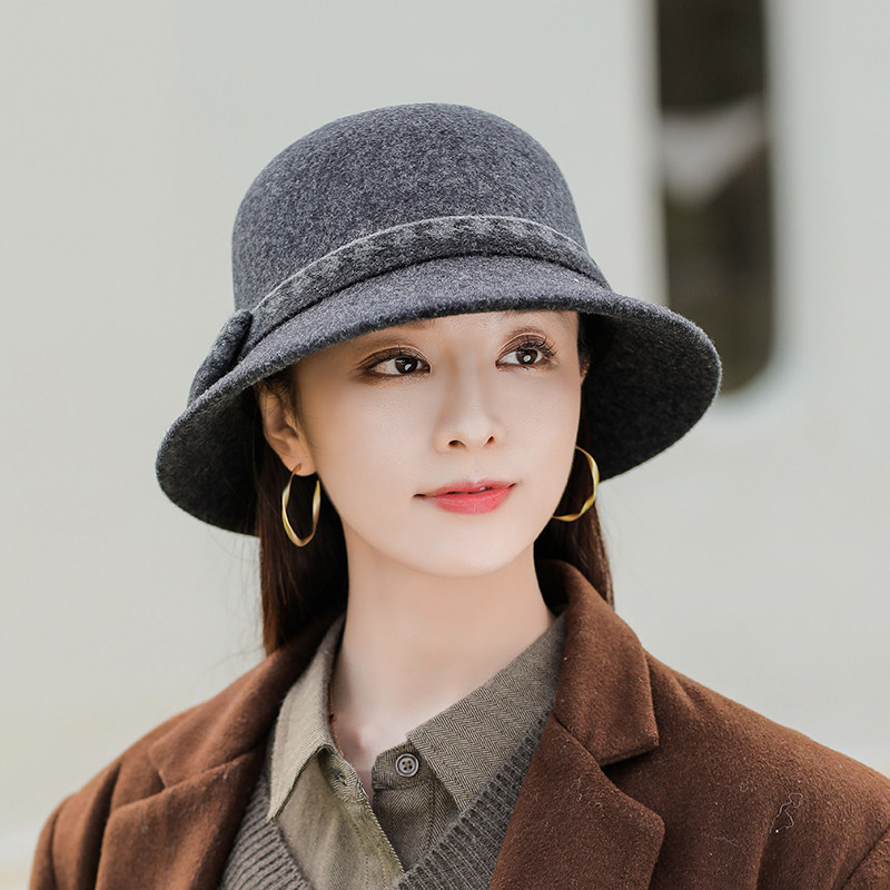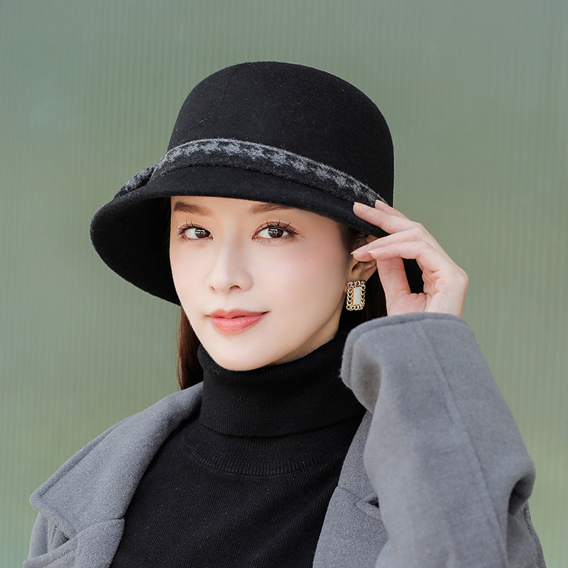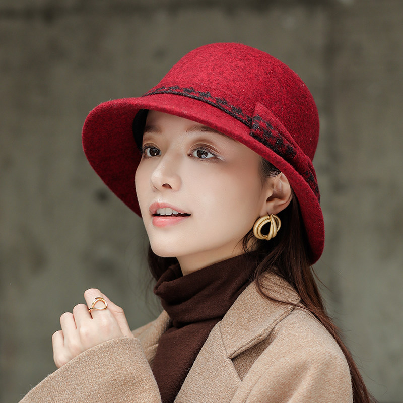 秋冬季女羊毛呢帽子英伦复古礼帽洋气时尚百搭渔夫帽保暖中年盆帽