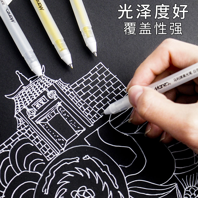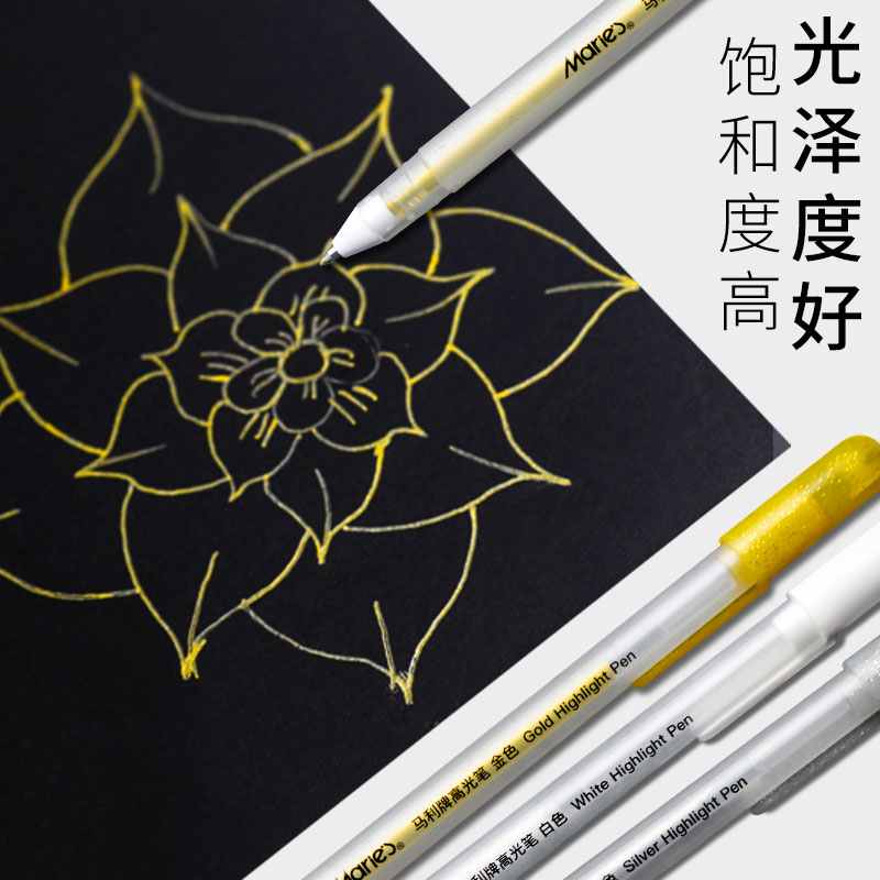 马利高光绘画笔漫画动漫高光白笔画画专用手绘勾线笔黑底写白字