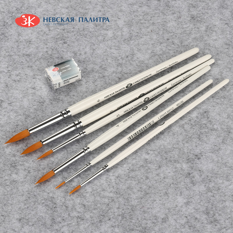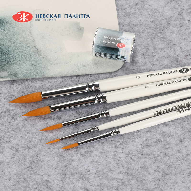 俄罗斯White nights白夜画笔 3113 水彩画笔 短杆白杆圆头人造毛水粉画笔