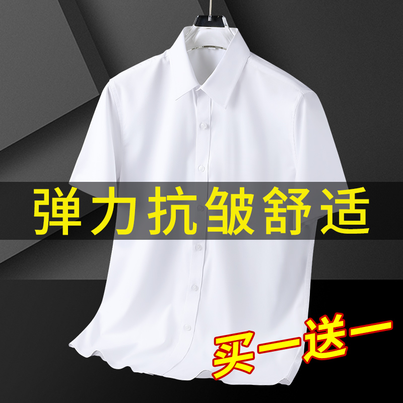 男士夏季短袖白衬衫商务正装冰丝薄款休闲衬衣高级感黑长袖西装寸