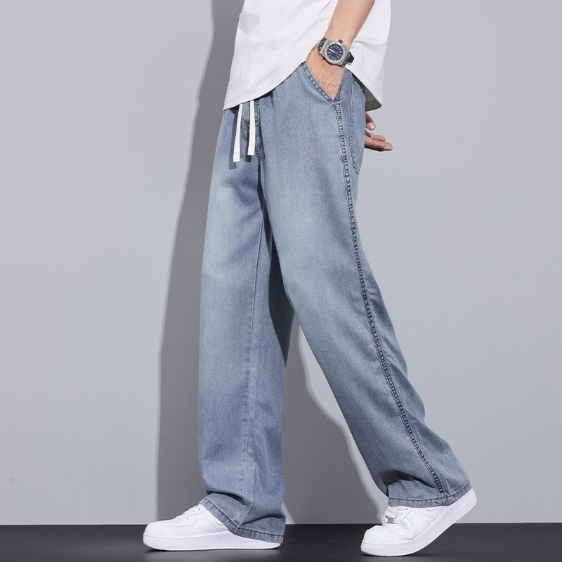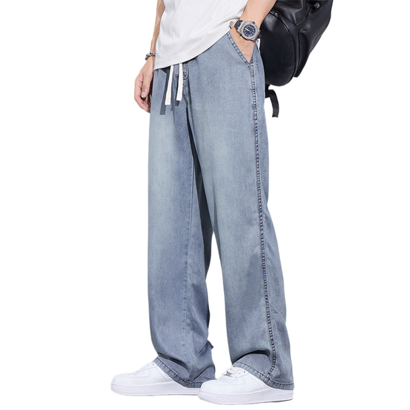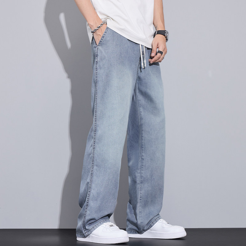 天丝垂感牛仔裤男夏季薄款2024新款宽松直筒冰丝超薄阔腿休闲裤子
