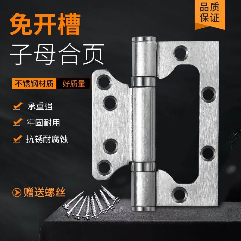 4寸不锈钢子母合页静音轴承房门实木门免开槽304合叶5寸黑色铰链