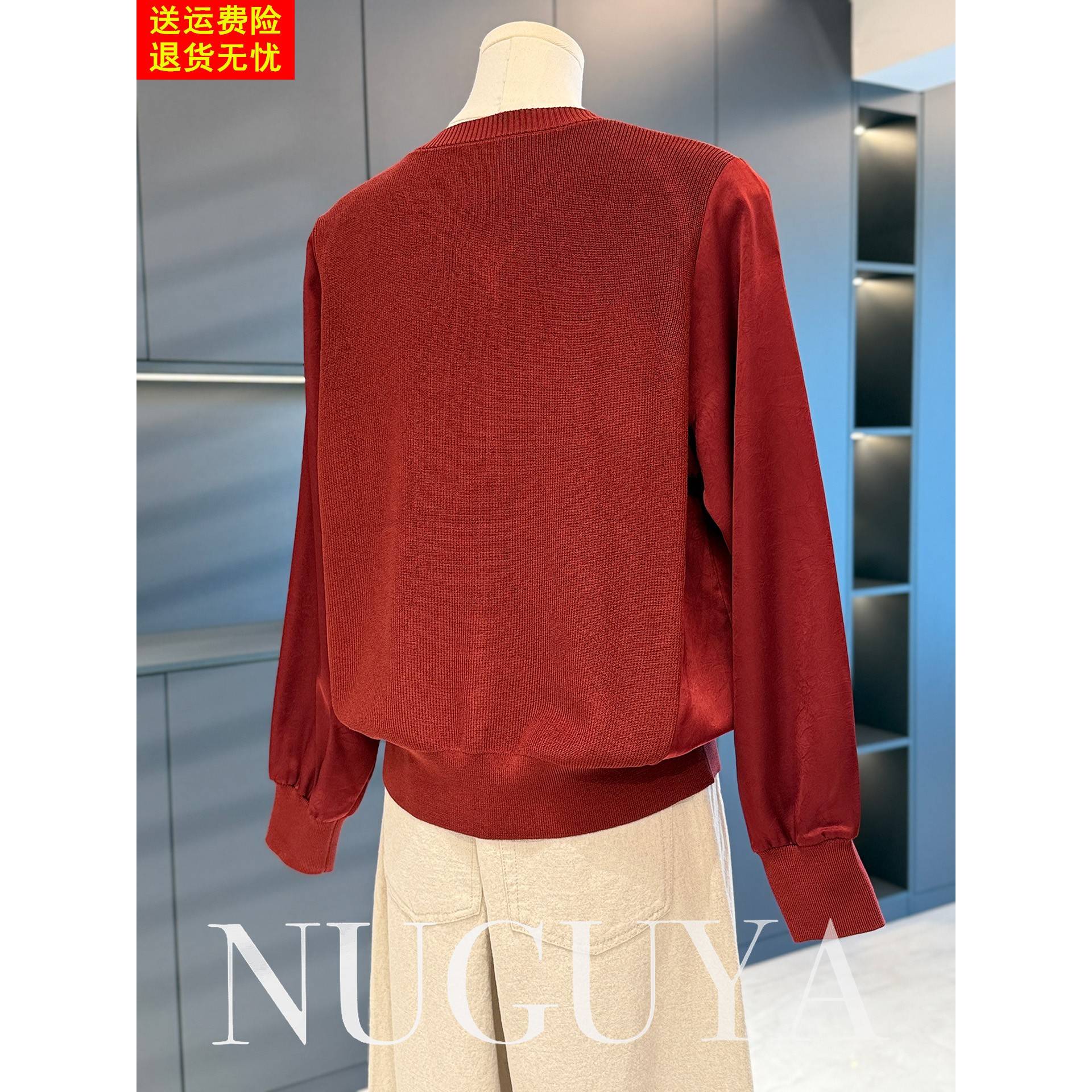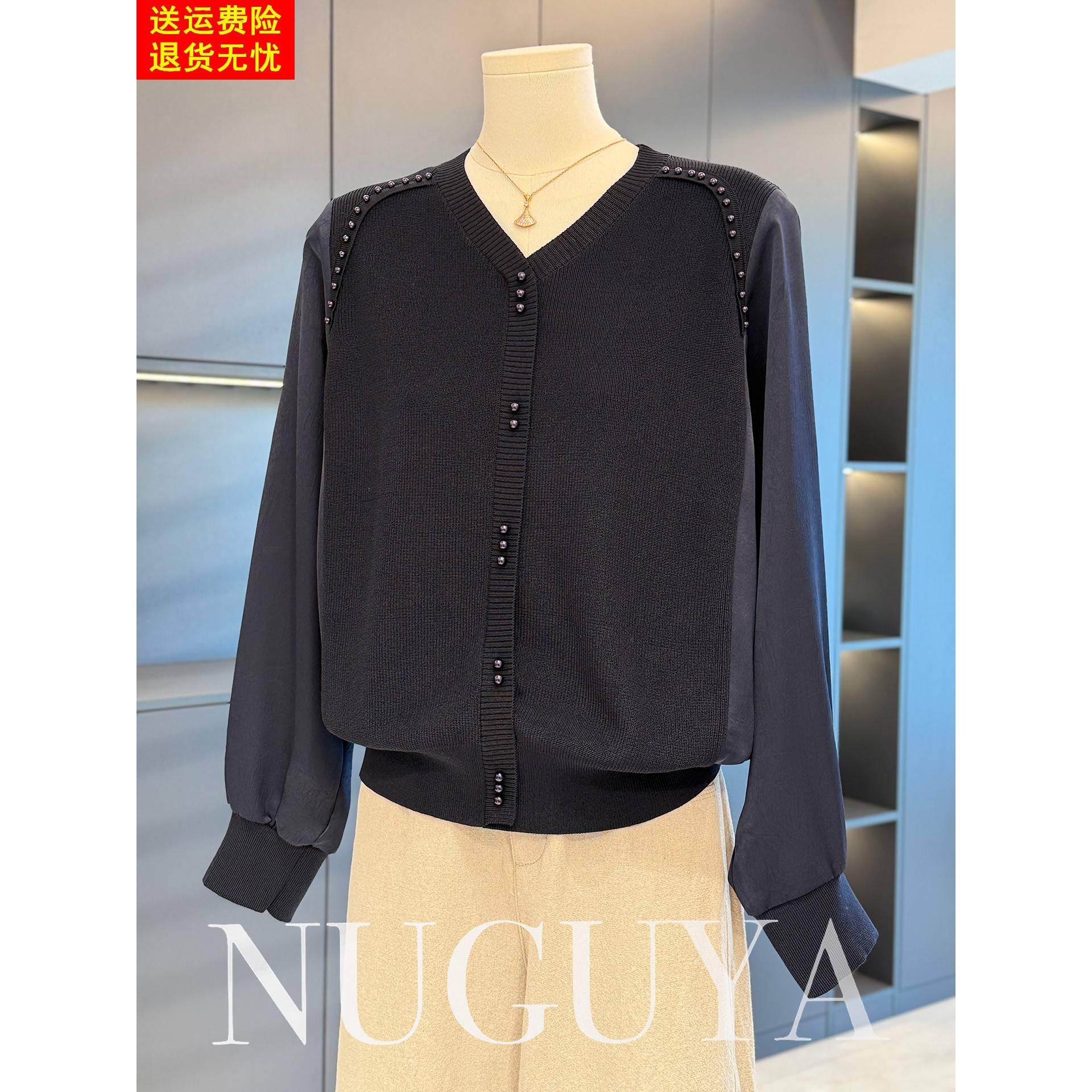 时尚洋气雪纺拼接针织衫女妈妈装秋装新款上衣气质百搭中老年打底