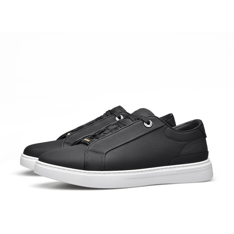 宾度简约休闲真皮软底黑色板鞋
