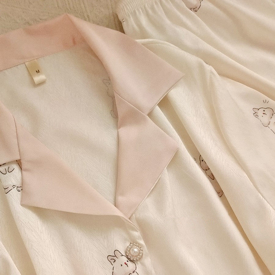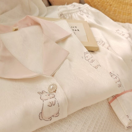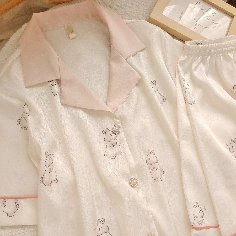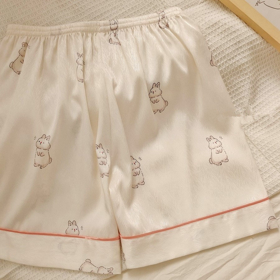 【蜜桃奶兔】可爱冰丝夏睡衣套装