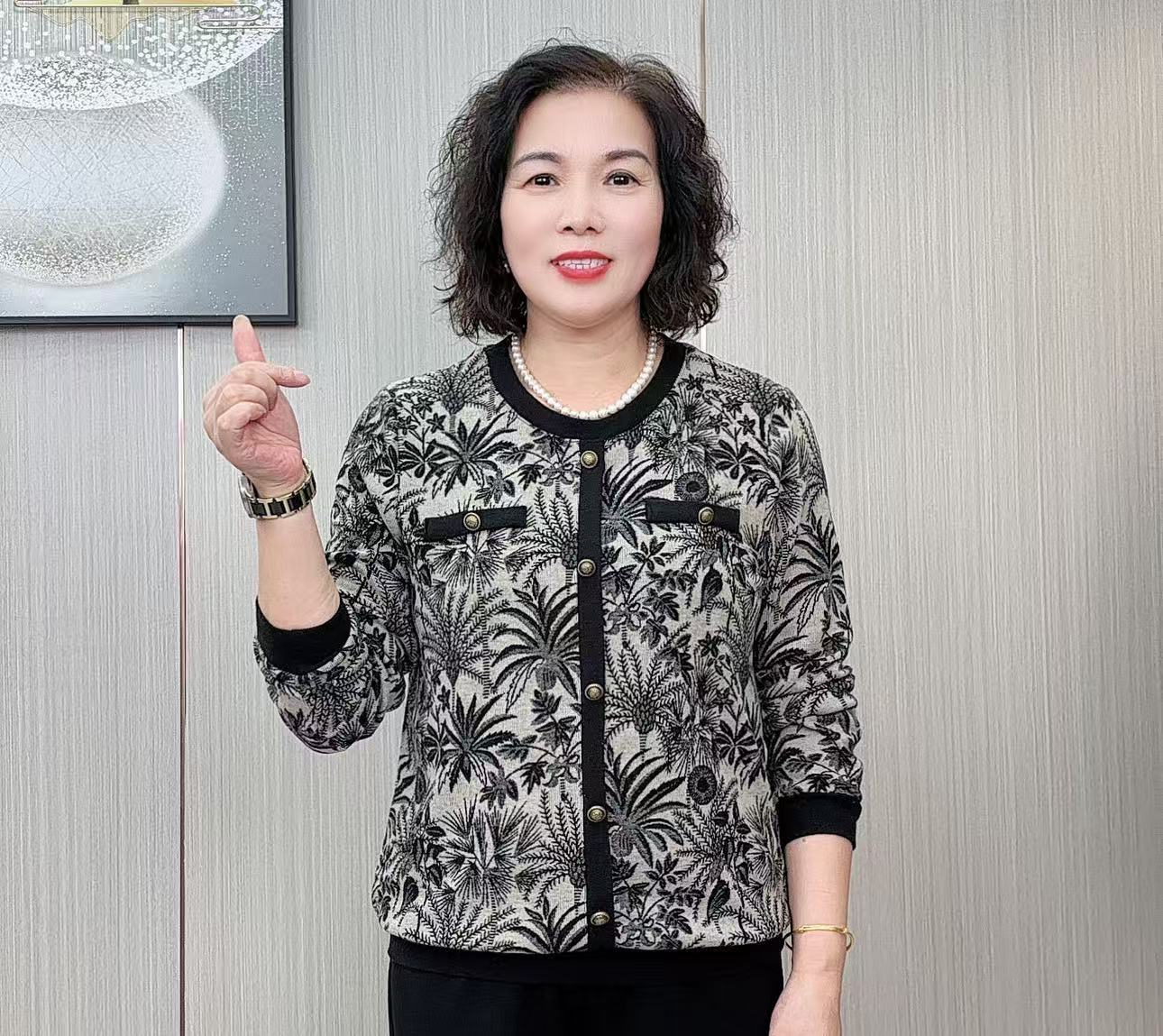 妈妈装时尚圆领印花宽松长袖上衣2025秋新款中老年洋气遮肚小衫女