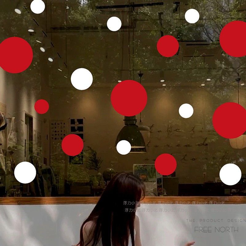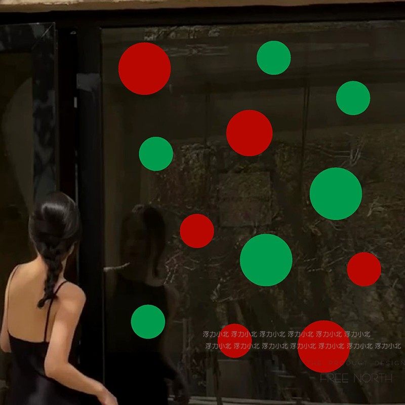 新年红绿金圆点波点贴纸 圣诞节店铺玻璃橱窗墙面装饰墙贴可自粘