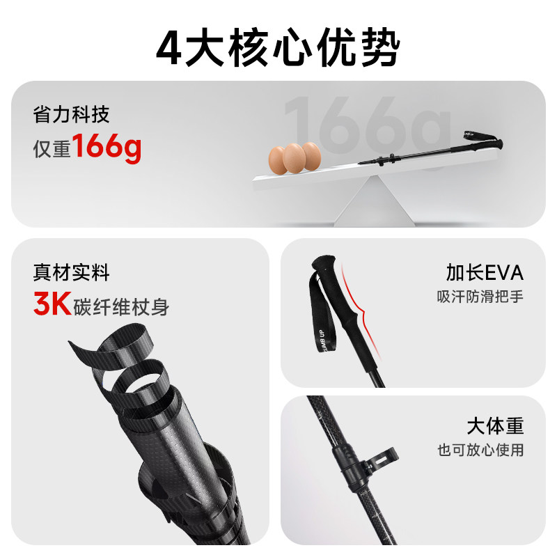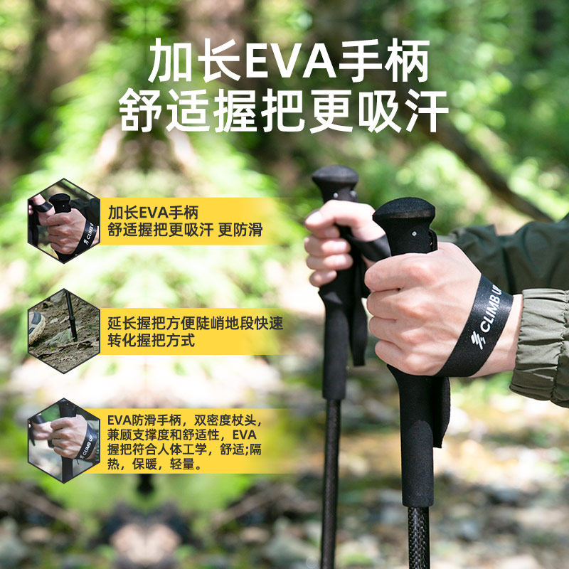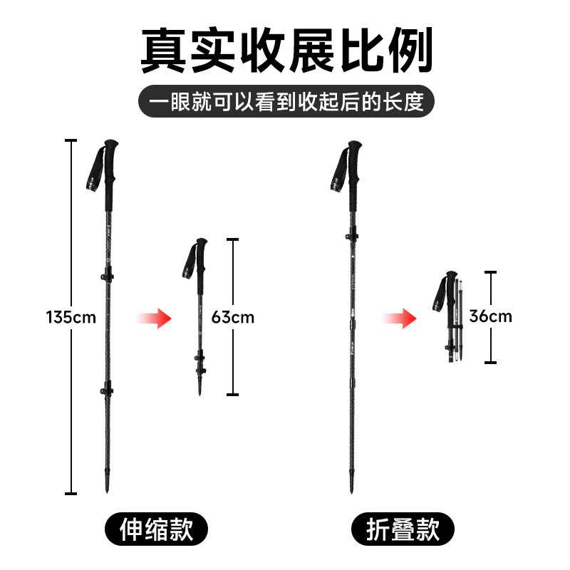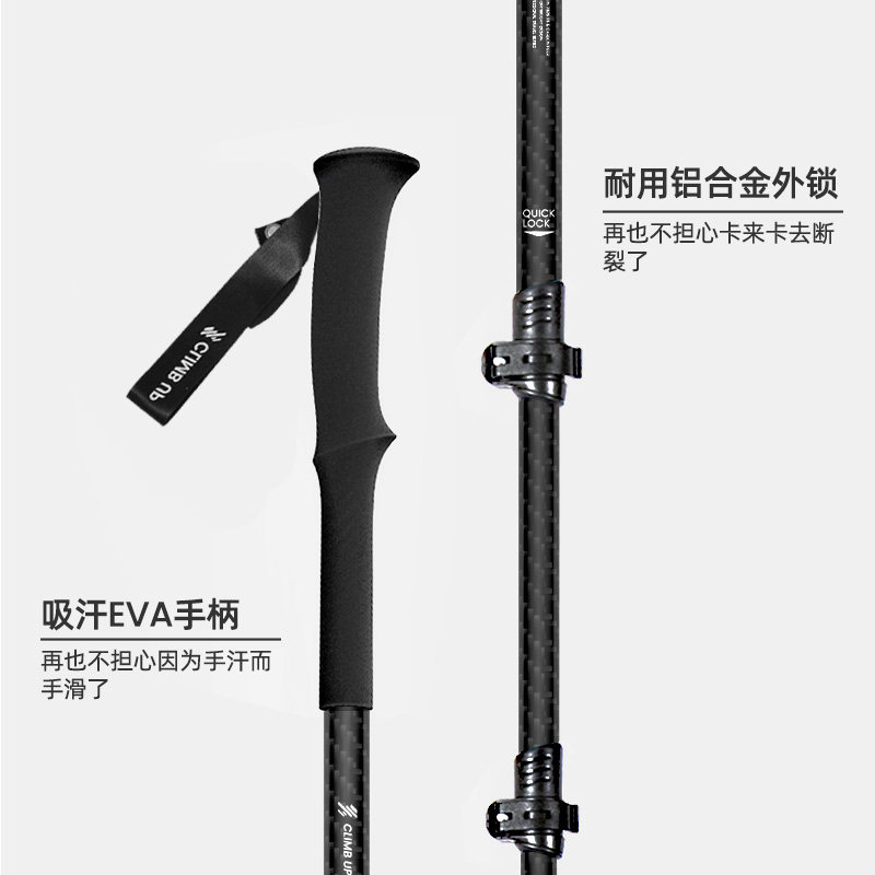 赛普碳纤维登山杖碳素超轻折叠伸缩拐杖爬山装备专业户外徒步手杖