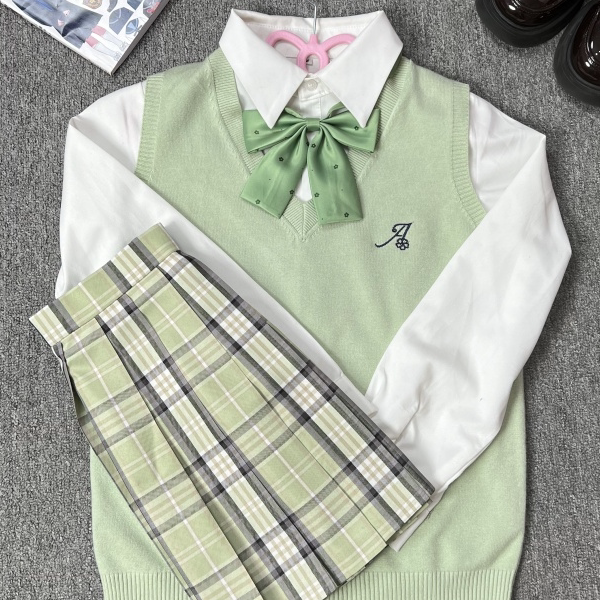 川町香【川知音】刺绣马甲套装原创正版格裙背心学院女叠穿