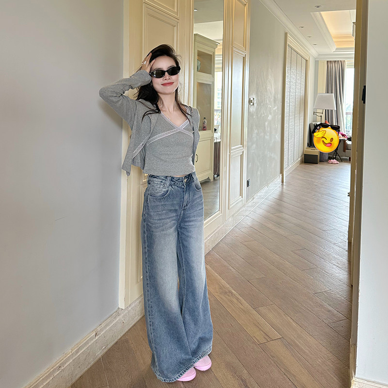 金苏一 复古蓝色微喇牛仔裤女2026春秋韩版高腰显瘦水洗休闲裤子
