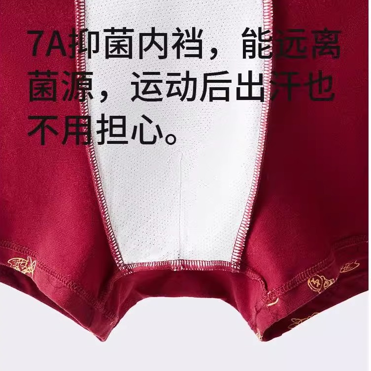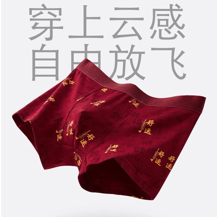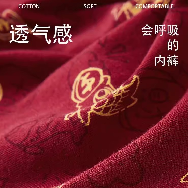 好运连连印花男士内裤本命年红色棉款新婚喜庆透气舒适男士平角裤