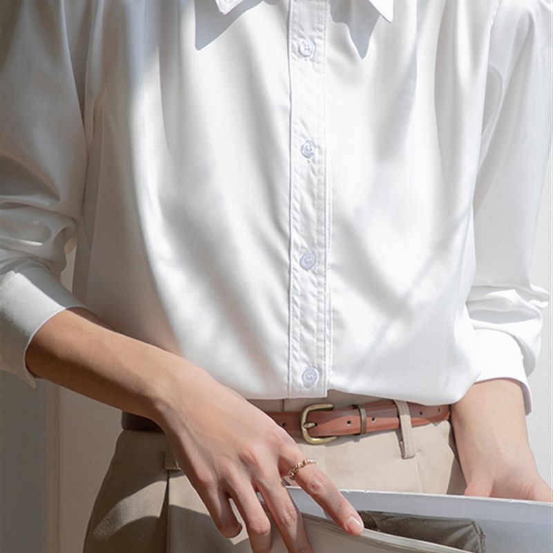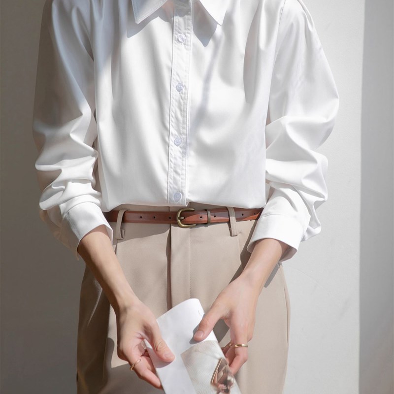 女式右肩长袖白衬衫2025春季和秋季新通勤正式面试内上装