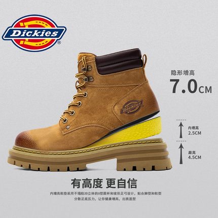 Dickies增高鞋男马丁靴隐形内增高男鞋2026新款春季加绒雪地靴男
